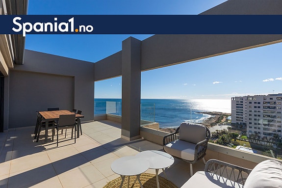 Denne toppleiligheten ligger helt på første linje i det attraktive boligkomplekset Panorama Mar i Punta Prima. Boligen ligger i 9. etasje og har sørvendt beliggenhet med åpen og panoramisk utsikt mot Middelhavet.