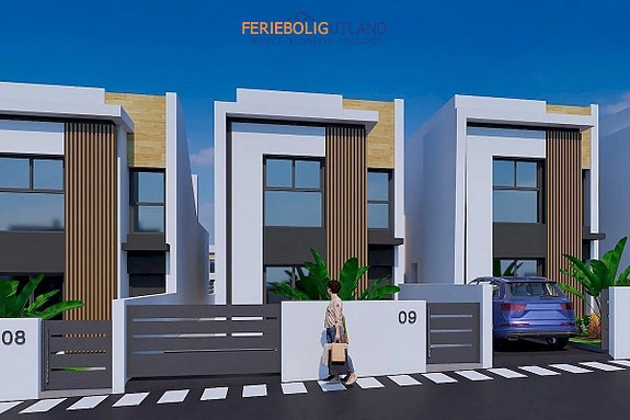Moderne villaer med 3 soverom, hage og takterrasse. Privat basseng.
