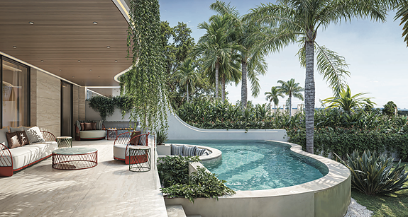 Toppleilighetene har egen taketasje med privat basseng og panoramautsikt over Golden Mile.