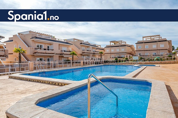 Denne velholdte leiligheten ligger i det populære boligkomplekset Vista Azul i Punta Prima. Anlegget har flotte fellesfasiliteter med to svømmebasseng, hvorav ett er oppvarmet, samt spaområde med jacuzzi og badstue.