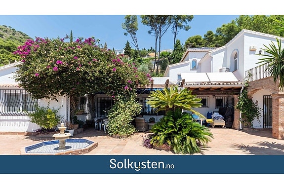 Denne sørvendte villaen ligger i Mijas og er utformet i tradisjonell andalusisk stil kombinert med moderne løsninger. Eiendommen har utsikt over både Middelhavet og de omkringliggende fjellene.