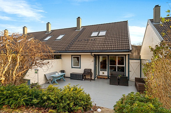 Innholdsrikt enderekkehus med solrik og barnevennlig beliggenhet - parkering i carport med el-lader.