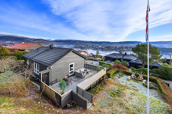 BUD FORELIGGER! Enebolig beliggende i attraktivt, sentralt og rolig boligområde. Stor, solrik tomt på 686 kvm