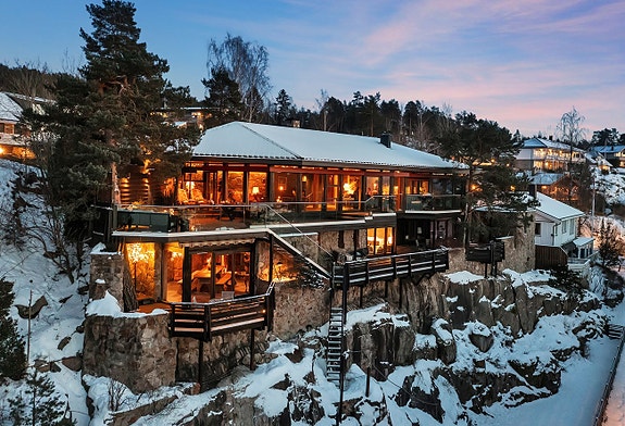 Praktvilla i skjærgårdsperlen Engelsviken. Nydelige rom med utsøkte detaljer. Stort svømmebasseng og flotte uteplasser.