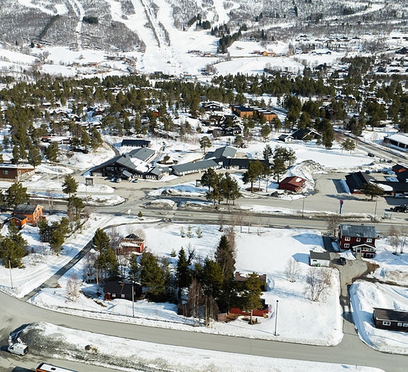 Eiendommen er beliggende mellom Europaveg 136 og jernbanestasjonen på Bjorli.