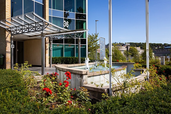 Bygget er fra 1993 og fremstår representativt med stor lysgård i adkomstarealet, naturstein på gulvene og du blir møtt av kunst og skulpturer når du ankommer. Uteområdet ble ferdigstilt juni 2024 og er opparbeidet med flere hyggelige sittesoner, sykkelskur og grønne oaser, i tillegg et flott supplement til kantinen hvor man kan nyte lunsjen utendørs. Ved inngangspartiet er det fontene og roser på den varme årstiden.