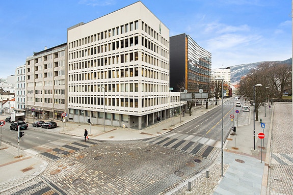 Det blir nå ledig kontorareal på 390 kvm på toppen i 7. etasje som vil kunne tilrettelegges med god kontorstandard og svært god beliggenhet. Eiendommen består av 7 etasjer med tillegg av underetasje og loft totalt 3.759 m2. Bygningen har svært god eksponering med kontorlokaler og butikklokaler på gateplan. Heisen i bygget tar deg rett opp til de forskjellige etasjene. Bygget har flere fasader med store vinduer som gir godt dagslys kontoretasjene og flott utsikt. I underetasjen er det garasje med parkeringsplasser til leietakere og det kan tilrettelegges for sykkelparkering og lademulighet for EL-bil.