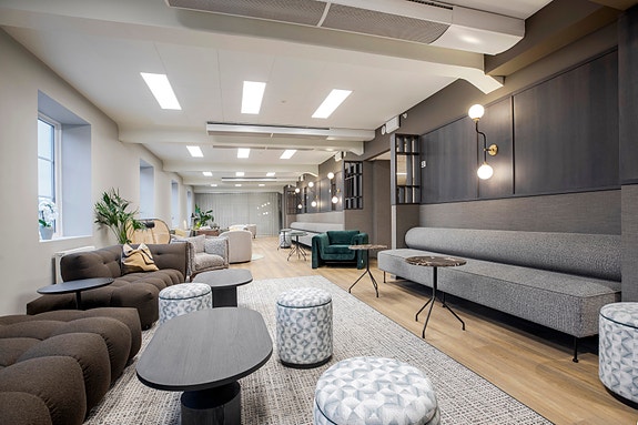 Lokalene, som strekker seg over ca. 600 m² BTA, ligger i byggets 4. etasje. De har en effektiv og moderne utforming, med en romslig velkomstsone som gir et godt førsteinntrykk. Lokalene ble totalrenovert i 2024 og fremstår som svært moderne, med smakfulle fargevalg og innbydende detaljer. Den store, åpne sosiale sonen er ideell for både møter og sammenkomster. Det er også mulig å leie lokalene møblert, slik at du kan flytte rett inn og komme i gang med en gang.