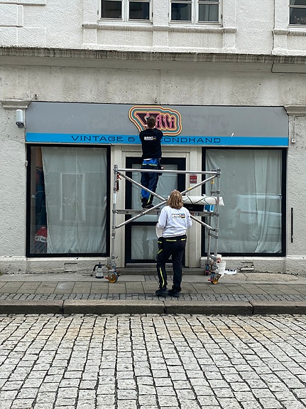 De sveisede klesstativene kan stå om ønskelig, ellers demonterer vi og sparkler og maler overflatene.