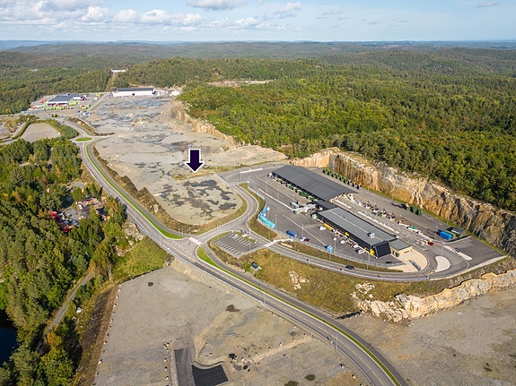 Samme innkjørsel som Avfall Sør, Tomten ligger på venstre side av innkjørselen.
