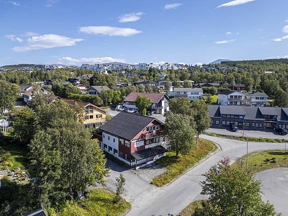 Eiendommen er beliggende i Norrønafeltet, innredet som kontorbygg over 3 plan, samt en mindre lagerdel med kjøreport. Bygget har vært fullt utleid til Troms Takst AS siden oppføring, som nå flytter ut. Eiendommen har romslig parkeringsdekning med plass til vel 15-20 p-plasser. I umiddelbar nærhet finner vi aktører som bl.a. Econor, Eltro, Eltel, Dagligvaregruppen og Serit IT-partner. Bygget fremstår som et vedlikeholdt eldre bygg med moderat god standard, som enkelt kan tilpasses ny leietakers behov.