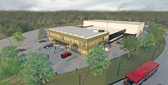 Velkommen til Moss Næringspark - illustrasjonsfoto av mulig bygg. Eiendommen kan tilpasses leietakers behov.