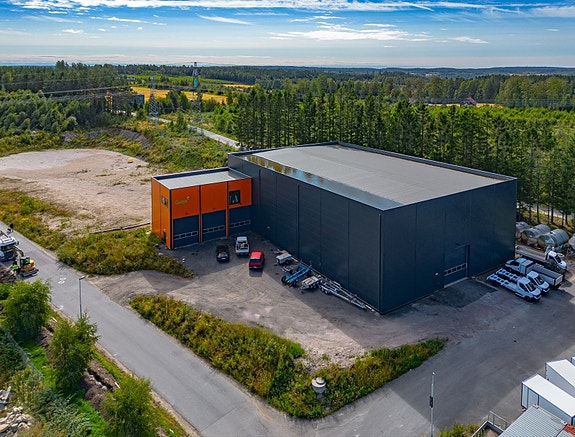 Moderne lagerbygg på ca. 1 170 kvm BTA, ferdigstilt i 2023. Bygget har fri takhøyde på 10,8 meter under drager og ca 12 meter mellom dragerne.