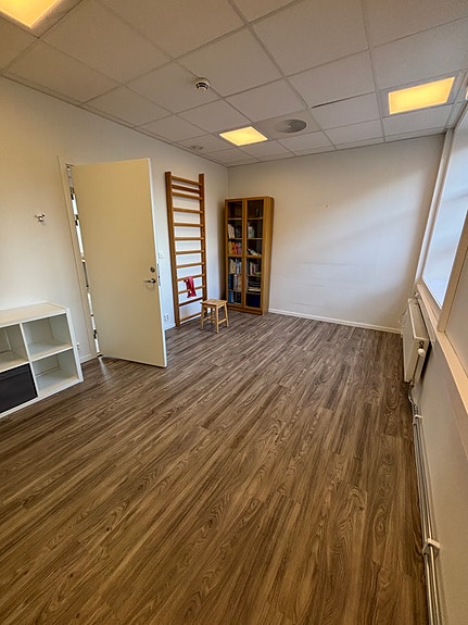 Rommet er 16 km2 med store vinduer og gode lysforhold. Rommet er også lydtett. Tilgang til venterom, treningssal, kjøkken, HC toalett, personal toalett og garderobe. Det er også en utvendig terrasse.