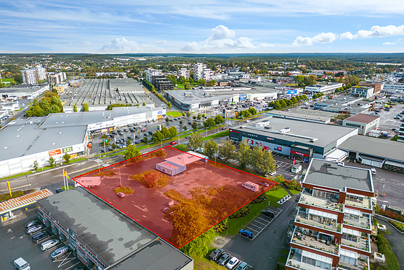 Næringstomt med god beliggenhet i trafikkert handelsområde til leie - parkering - utelagring - mulighet for nybygg