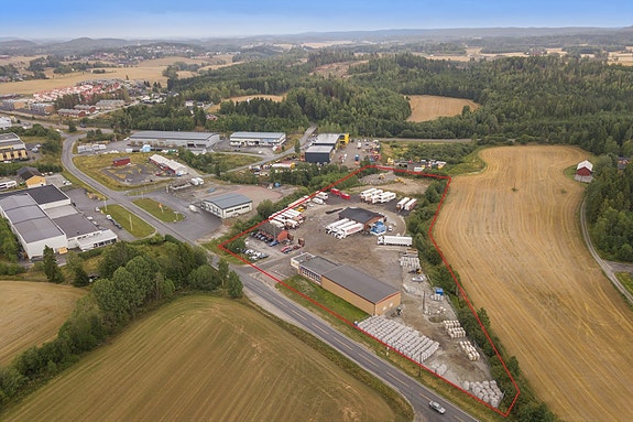 Eiet tomt på tilsammen 18.084 kvm. fordelt over 2 teiger (hhv. 7.626 og 10.458 kvm). Flat tomt med asfalterte uteområder og med gode lagringsmuligheter