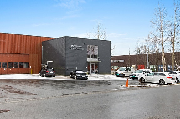 Kontorfløy med tilgang til garderobe og tilstøtende lagerhall.
