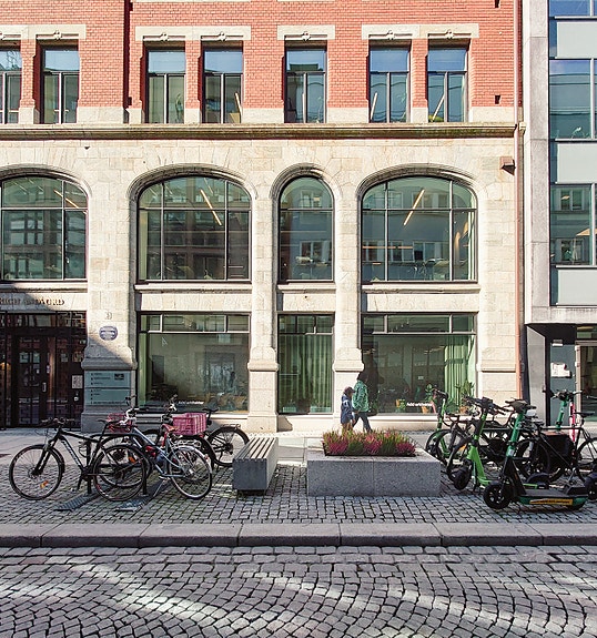 Lokalet strekker seg over første og andre etasje i et bygg fra forrige århundre. Her finner du moderne fasiliteter, gode rom og en skjermet bakgård som ofte brukes til korte pauser eller uformelle møter. De ledige arbeidsplassene ligger i 2. etasje, i et stort rom med gode lysforhold og utsikt mot Nedre Vollgate.