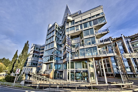 Karenslyst Allé 2 er et prestisjebygg med de fasiliteter og kvaliteter dette innebærer; utsøkte materialer, bl.a. skipsgulv i alle fellsarealer, betydelig kunstnerisk utsmykking, bassenger inne/ute med springvann, representativ kantine, resepsjon med vakt, parkeringskjeller, auditorium for inntil 150 personer med tilknyttet representative møterom m.m