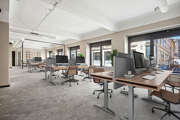 Lokalet i 2.etg er romslig og åpent, planløsningen kan enkelt tilpasses ny leietakers ønsker og behov. Lokalet er tilknyttet en opparbeidet bakgård godt egnet for sammenkomster og lunsjer på fine sommerdager.