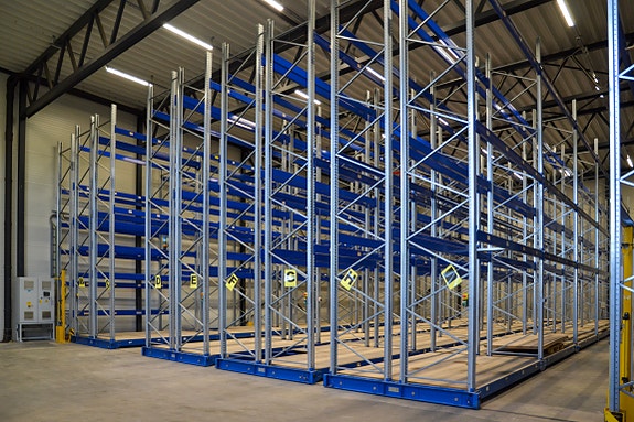 Lagersystem: mobil pallereolsystem (kjørende pallereoler) som gir effektiv utnyttelse av plassen