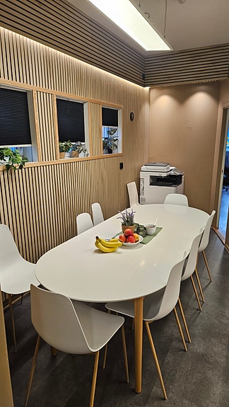 2 kontorer (varmepumpe)med 2 plasser, 2 kontorer (Gulv varme) med en plass. Fellesarealer (varmepumpe) med plass til 2-4 personer