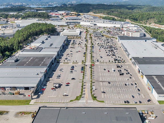 En perkekt destinasjon for handel på Sørlandet. Kundene kan kjøre rett til døra. Personalparkering og inngang bak byggene.