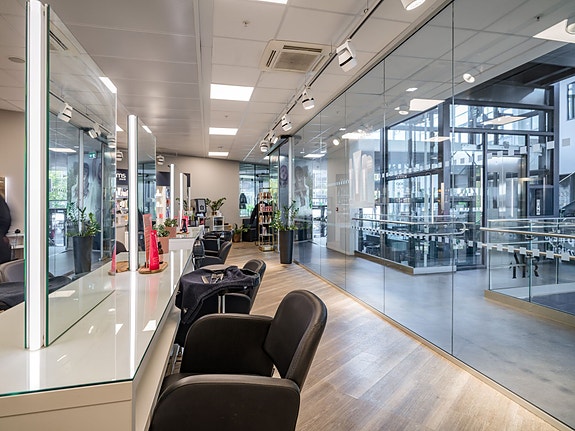 Butikklokalene ligger i byggets 2. etasje, og har tidligere vært benyttet som frisørsalong. De egner seg godt for frisør, hudpleie, velvære, helseaktører – eller annen type butikk- eller tjenesteyting som fungerer fint uten direkte adkomst fra gateplan. Lokalene vil tilpasses i samarbeid med ny leietaker.