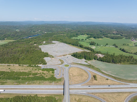 Store deler av tomten er opparbeidet og byggeklar. Nødvendig infrastruktur til området er på plass, bl.a. eget kryss for av- og påkjøring til E18.