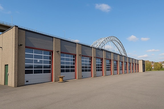 Romslige verksted- og lagerlokaler med høye porter og god uteplass. Sentralt under Fredrikstadbrua