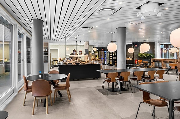 Kontorlokalene i 4.etasje kan by på flott utsikt og har en god utforming. Arealene består av en kombinasjon av cellekontor, åpent landskap, flere møterom, sosialsoner og kjøkken. Øvrige fasiliteter i bygget er kantine, treningsrom, felles møterom, garderober med dusj, sykkelparkering og parkeringsmuligheter for bil innendørs/utendørs. De ledige lokalene kan tilpasses etter ønske fra ny bruker.