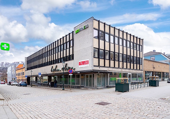 Bygg i glass og betong med særpreg. Bygningen har 4 plan inkludert underetasje. Utleier tilpasser lokalene ved behov.