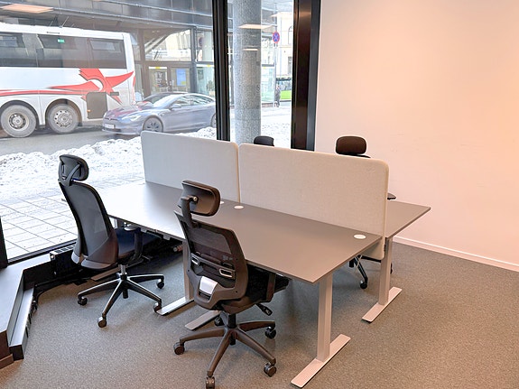 Leiepris inkluderer felleskostnader, kontormøbler, felles møterom, wifi, kontorvask, strøm og oppvarming.