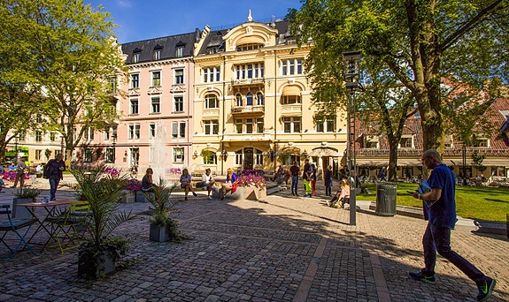 Bankplassen 1A ligger idyllisk plassert i hjertet av Kvadraturen. Omkranset av Norges Banks gamle bygg som ble reist i 1828, og de nye lokalene til Norges Bank som ble oppført i 1986. Til Norges Banks 200-årsjubileum i 2016 ble plassen renovert med nye lysmaster som bruker de historiske armaturene, det ble gjennomført en beskjæring av de 12 sølvlønnetrærne som ble plantet i 1986 og seks nye sommersyriner ble plantet på solsiden av plassen. Midt på den brostensbelagte plassen ble fontenen restaurert - og bassenget fikk en utforming som tillater bruk som scene om vinteren. Renoveringen fikk Norsk Lyspris for 2016. Nærmeste nabo er Engebret Café, som ble etablert av Engebret Christophersen i 1857 og er trolig Oslos eldste eksisterende restaurant. Over 150 år etter, er Engebret Café fortsatt et hyggelig spisested med stor uteservering.