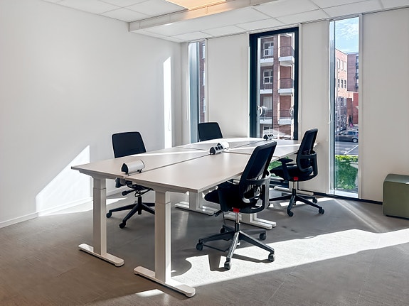 Vakkert utformet arbeidsplass i åpent kontorlandskap for 3 personer i Spaces Nydalen