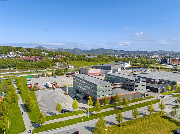 Kontorbygg med ledig lagerareal og god parkeringsdekning