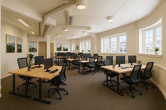 Vi har nå et ledig kontorlokale ledig i toppetasjen i Biskop Gunnerus gate 2. Eiendommen har en svært sentral og synlig beliggenhet like ved Jernbanetorget, noe som sikrer enkel adkomst for både ansatte og besøkende med offentlig transport. Lokalet er i dag innredet med et åpent kontorlandskap, supplert med flere møterom, separate kontorer og teamrom, samt et kjøkken. Dette arealet kan totalrenoveres og tilpasses helt etter den nye leietakerens ønsker og behov. Se vedlagt bilde for et innredningsforslag.