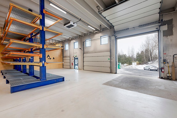 - Delvis innredet med pallereoler og åpent areal, med ca. 6 m fri takhøyde og lasterampe i betong.