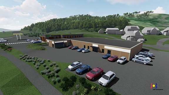 Visualisering av ny fasade og ny kiwi butikk
