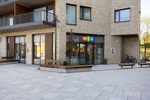Rådhuset og det nye Kulturhuset er nærmeste nabo. Lokalet har fasade mot sentrumsgater og pent opparbeidede gangarealer.