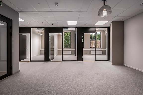Det ledige lokalet ligger i byggets 3. etasje. Her er i dag 3 cellekontorer, et mindre åpent landskap, samt felles kjøkken og toaletter som deles med nabolokalet. Et perfekt kontorlokale for selskaper med 3-5 ansatte.
