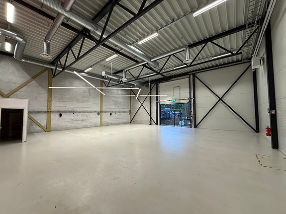 Lager med god takhøyde ca. 6,60 m (ca. 5,6 m under drager) og mulighet for resepsjon/kundemottak. Lageret er på ca. 440 kvm.