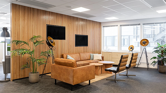 God plassering i første etasje og god kontakt med byggets atrium, personalrestauranten og øvrige fellesarealer.