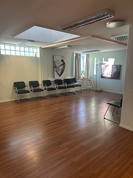 Romslig fellesareal, som i dag brukes til kurs, gruppetimer, yoga og arrangementer