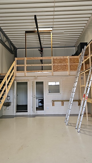 Moderne lagerseksjon med bad, messanin og kontordel – Moland Park, Arendal