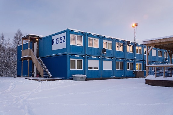 Brakkeriggen med byggeår 2017 og servicebygget med byggeår 2020.