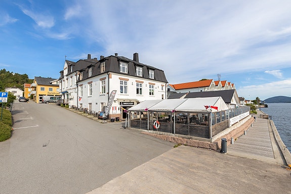 Næringseiendom består av et kombinert bolig-/næringsbygg på 3-4 etasjer med selveierenheter / seksjoner. Bestiktiget næringsdel på et plan, seksjonsnummer 1, ligger i u.etasje og består av restaurant-pub med bod lager på siden. Uteservering i bakgården og ned i mot svelvikstrømmen.