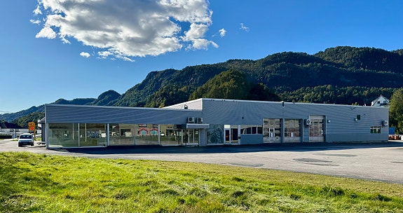 - Ligger meget godt til med utstillingslokaler sett i fra veien.