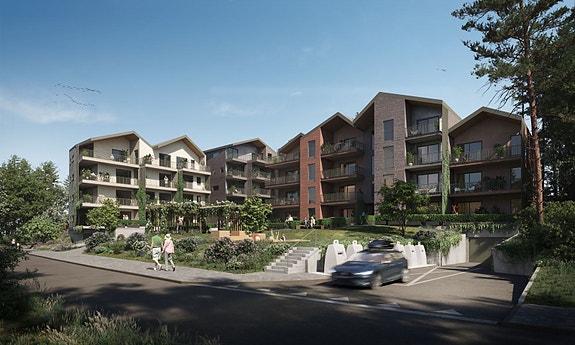 Prosjektert oppføring av 2 leilighetsbygg (Bygg AB og C) med tilhørende uteområde og parkeringskjellere på eiendommene. Totalt 36 leiligheter fra 40 til 100 m² fordelt på 4 til 5 etasjer. Østre Linje arkitektur og landskap har tegnet byggene hvor det er lagt stor vekt på arealeffektive planløsninger som ivaretar eiendommens gode lysforhold. Planarbeidet har prioritert høy kvalitet hva gjelder miljøhensyn, teknisk standard og estetisk uttrykk. Samlet areal på BTA 4.469 m²/ BRA 2.929 m² (totalt inkludert parkeringskjeller: BTA 4.527 m²/ BRA 4.055 m²). Garasjekjellere med 29 p-plasser, samt boder, tekniske rom og sykkelparkering. Prosjektet innebærer rivning av eksisterende bygninger på eiendommene.