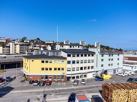 Meget sentral, strategisk og synlig beliggenhet langs Strandgata, ved havnepromenaden nær Sandnes sentrum.